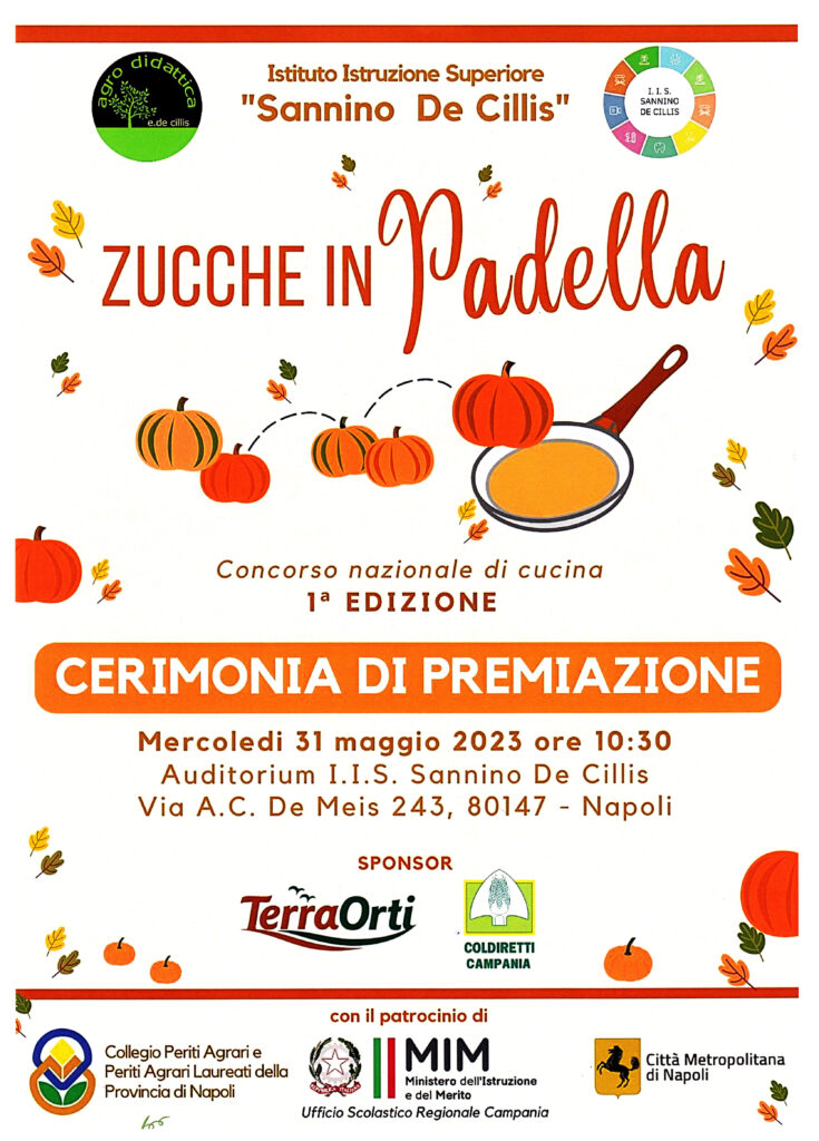 Questo Collegio, nell’ambito delle iniziative di concertazione con l’Istituto Agrario “E. De Cillis”, finalizzata alla valorizzazione professionale dei giovani Periti Agrari, già da qualche anno partecipa con una borsa di studio da assegnare ad alunni  particolarmente meritevoli. Nell’ambito di tali iniziative si è svolta, presso l’auditorium I. I. S. Sannino-de Cillis in via A. C. De Meis, 243 – 80147 Napoli, la cerimonia di premiazione della 1° edizione del concorso nazionale di cucina “Zucche in padella”; zucche coltivate e prodotte da allievi dell’Azienda Agraria dell’Istituto Agrario “E. De Cillis”.